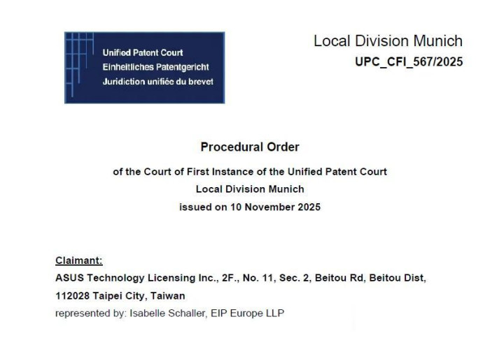 2025年11月11日,欧洲统一专利法院(UPC)慕尼黑地方分院公布了一份前一天做出的命令,小米和华硕两家公司于2025年11月6日向法庭提交了陈述,基于正在进行的和解谈判,共同请求中止本案程序。